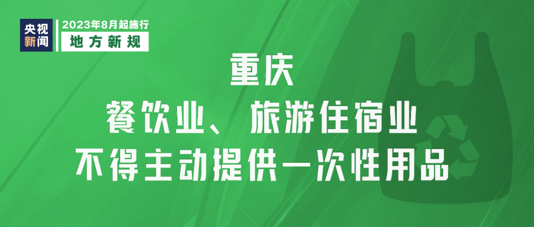 《重慶市一次性用品目錄清單管理辦法》8月1日起實(shí)施,要求重慶市餐飲業(yè)、旅游住宿業(yè)不得主動(dòng)提供一次性用品,鼓勵(lì)使用易降解、可回收再利用的綠色環(huán)保產(chǎn)品。外賣(mài)平臺(tái)應(yīng)積極引導(dǎo)消費(fèi)者減少使用一次性用品。